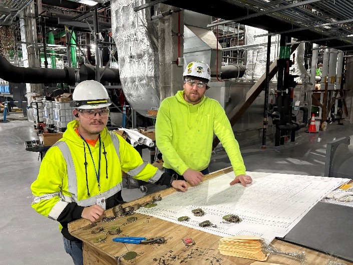 Steamfitter Journeyman Austin Allen is mentoring Apprentice Joe Cellini through the meticulous process of valve tagging and pipe labeling throughout the facility. At first glance, this work may appear routine. In reality, it plays a critical role in the safety, efficiency, and long-term reliability of a highly complex manufacturing environment.